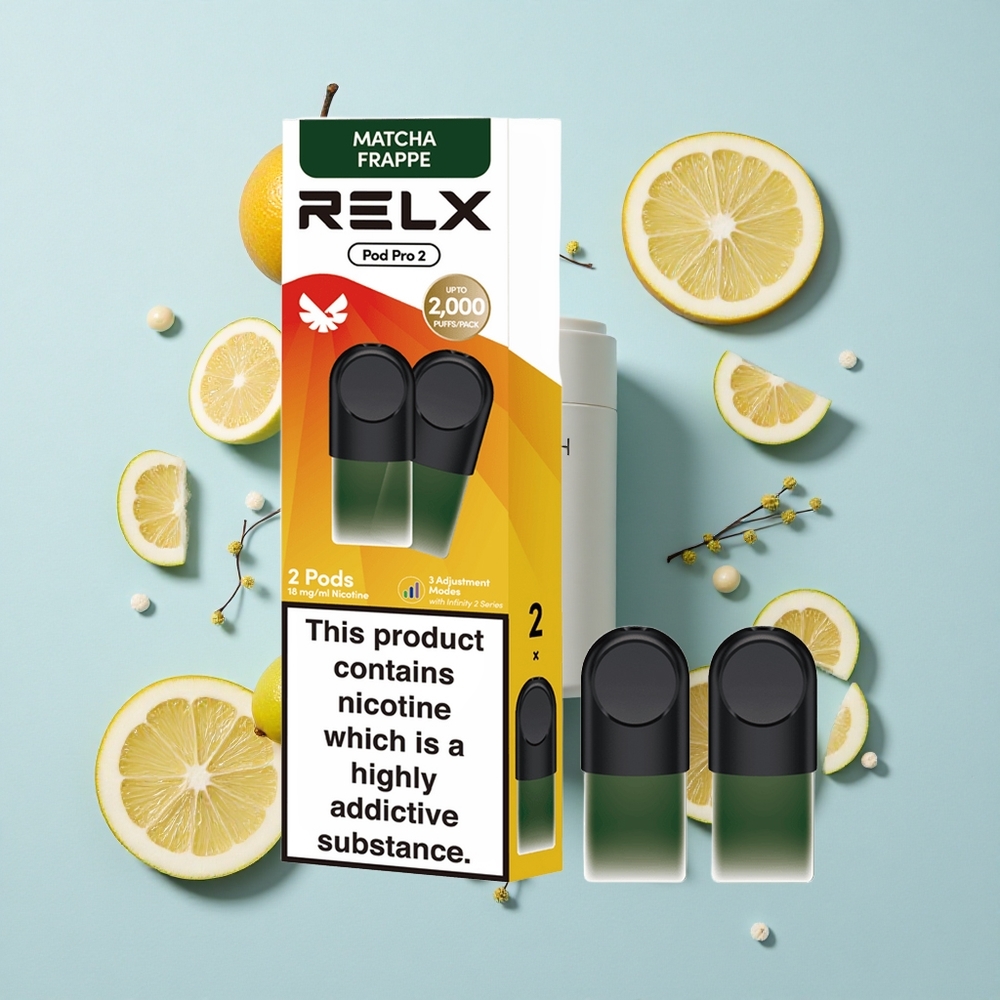 RELX Pod Pro 2 – Chá-Matcha Frappe – 600 puffs – 1.9ml – 1.8% Nicotina – 2 ou 3 pods/pacote