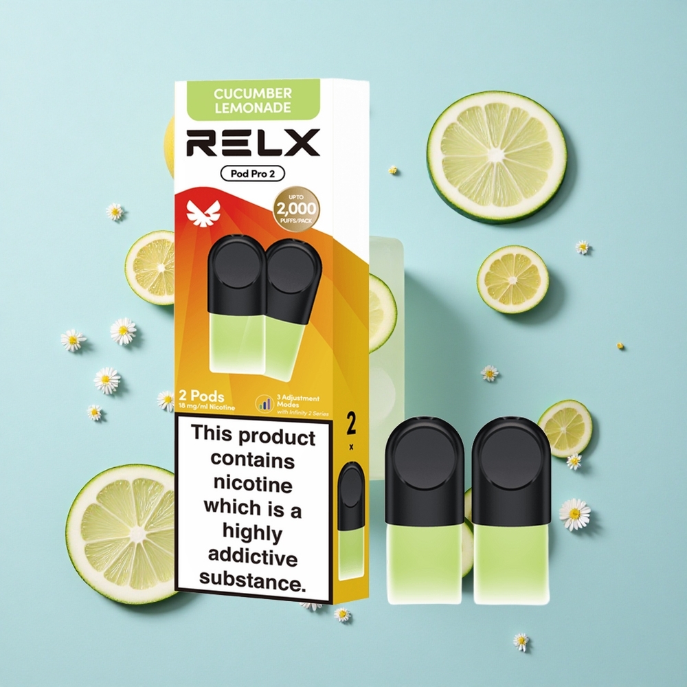 RELX Pod Pro 2 – Sabor Limonada de Pepino – 600 tragadas – 1,8% nicotina – 1,9ml – 3 modos de voltagem