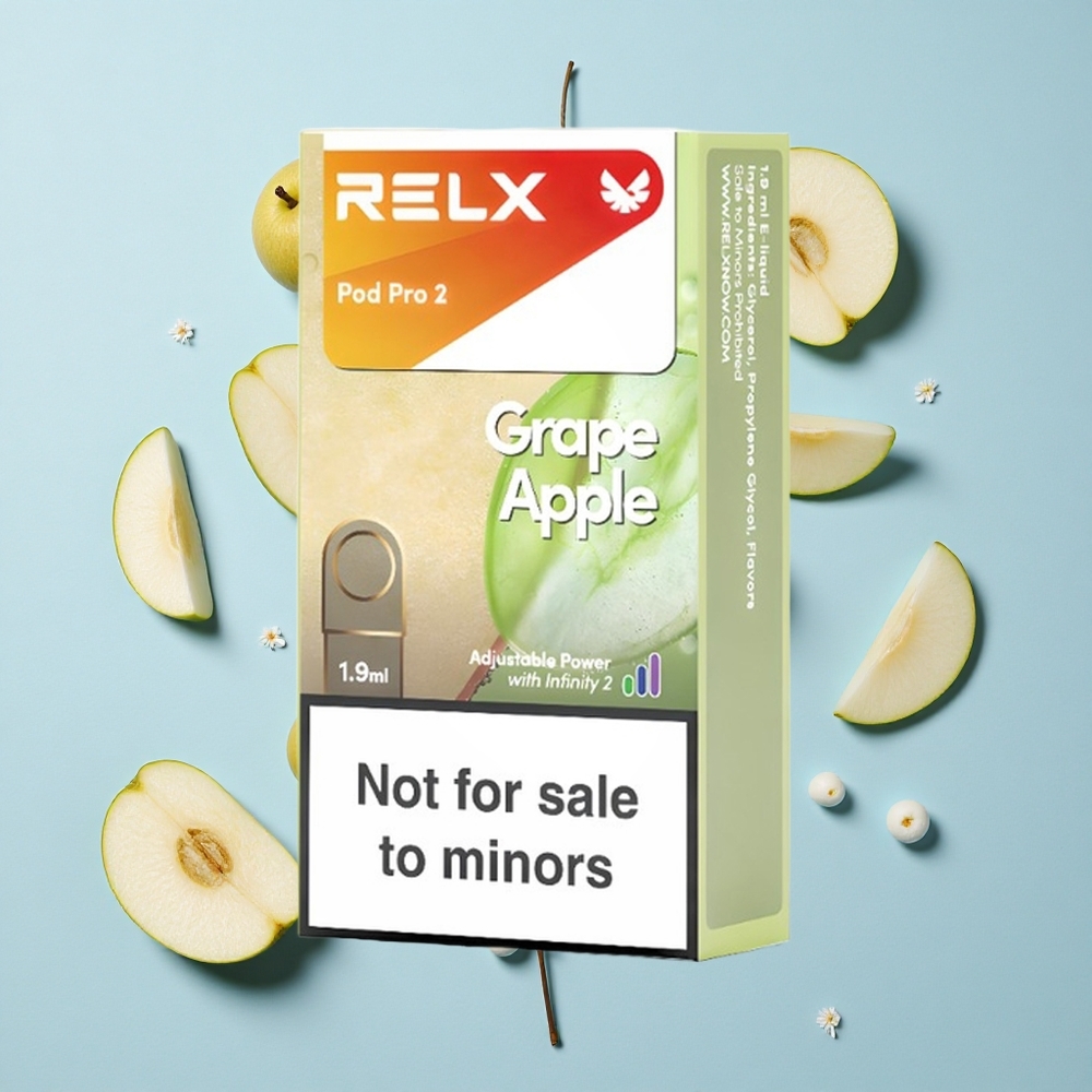 RELX Pod Pro 2 – Uva Maçã – 0% Nicotina – 600 Puffs – 1.9ml – 3 Modos de Voltagem