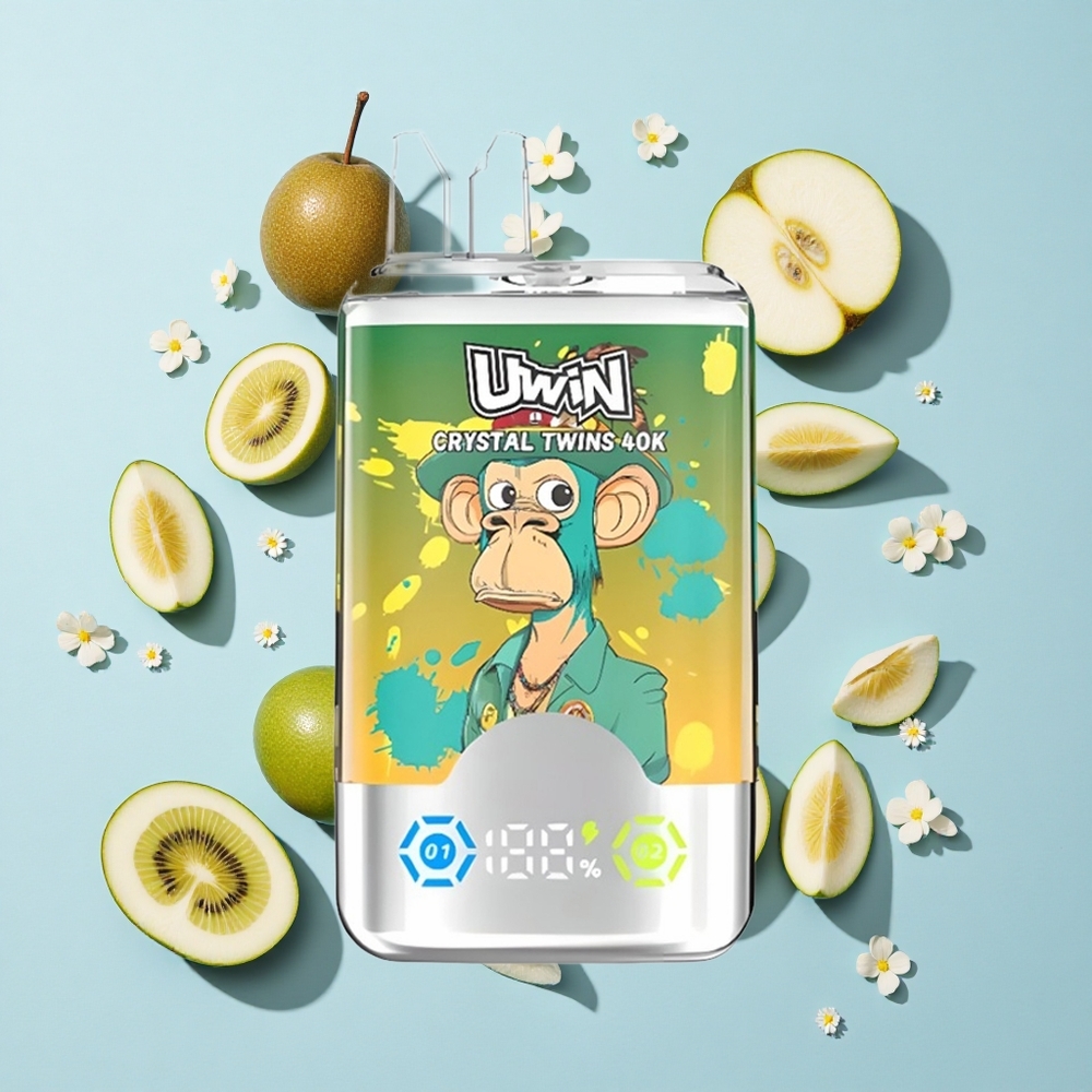 UWIN Crystal Twins 40000 Puffs Vape Descansável Kiwi Maracujá Goiaba Duas Maçãs