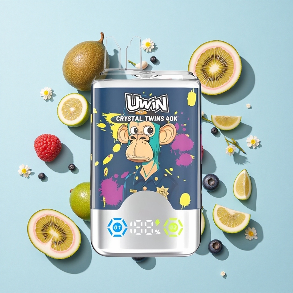 UWIN Crystal Twins 40000 Puffs Vape Duplo Sabor Kiwi Maracujá Goiaba Mirtilo Framboesa