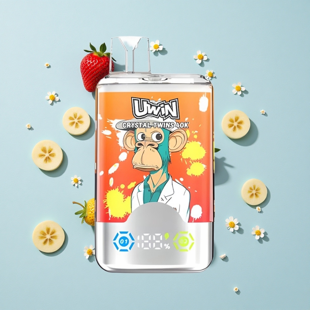 UWIN Crystal Twins 40000 Puffs Vape Duplo Sabor Morango Banana Amor 66 – 32ml, 850mAh, Type-C, 0.6 Ohm