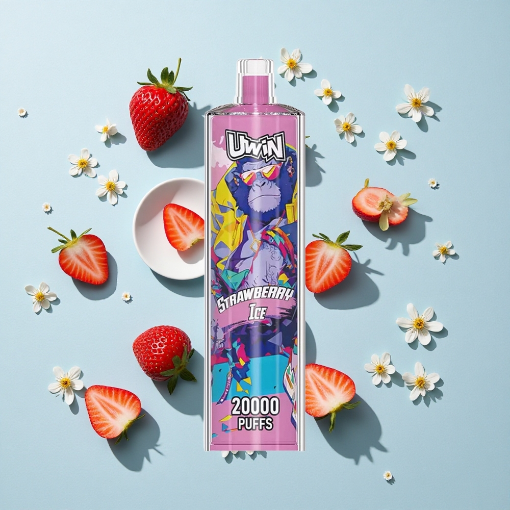 Uwin Shisha Hookah Crystal 20000 Puffs Morango Gelo 22ml Mesh Coil Type-C 650mAh