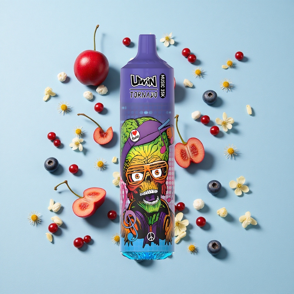 Uwin Tornado 35K Music Vape Descartável Mirtilo Cereja Oxicoco – 35.000 Tragadas, Bateria 600mAh, Bobina Mesh 1.0 Ohm