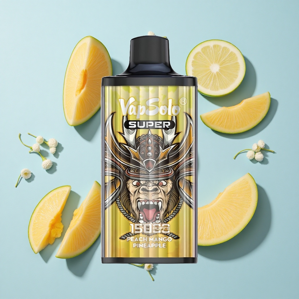 Vapsolo Super 15000 Puffs Vape Descartável Pêssego Manga Abacaxi – 40ml, 850mAh, Tipo-C