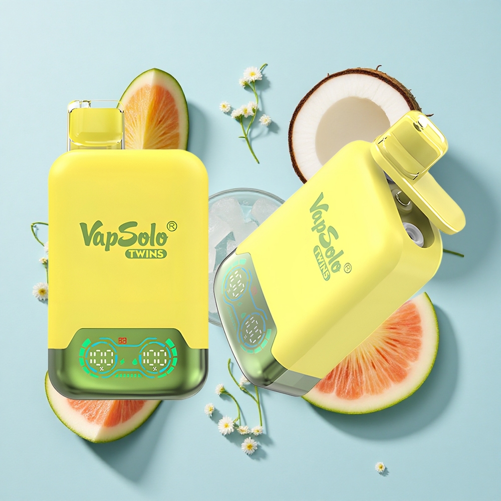 Vapsolo Twins 20000 Puffs Vape Descartável Abacaxi Coco & Melancia Ice – 40ml, Tipo-C, 2 Tanques