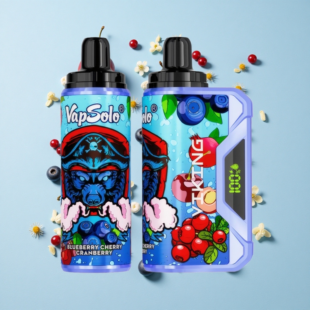 VapSolo VIKING 12000 Puffs Vape Descartável Mirtilo Cereja Oxicoco com Display LED e Tipo-C