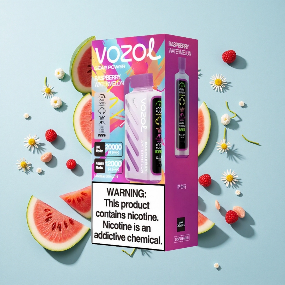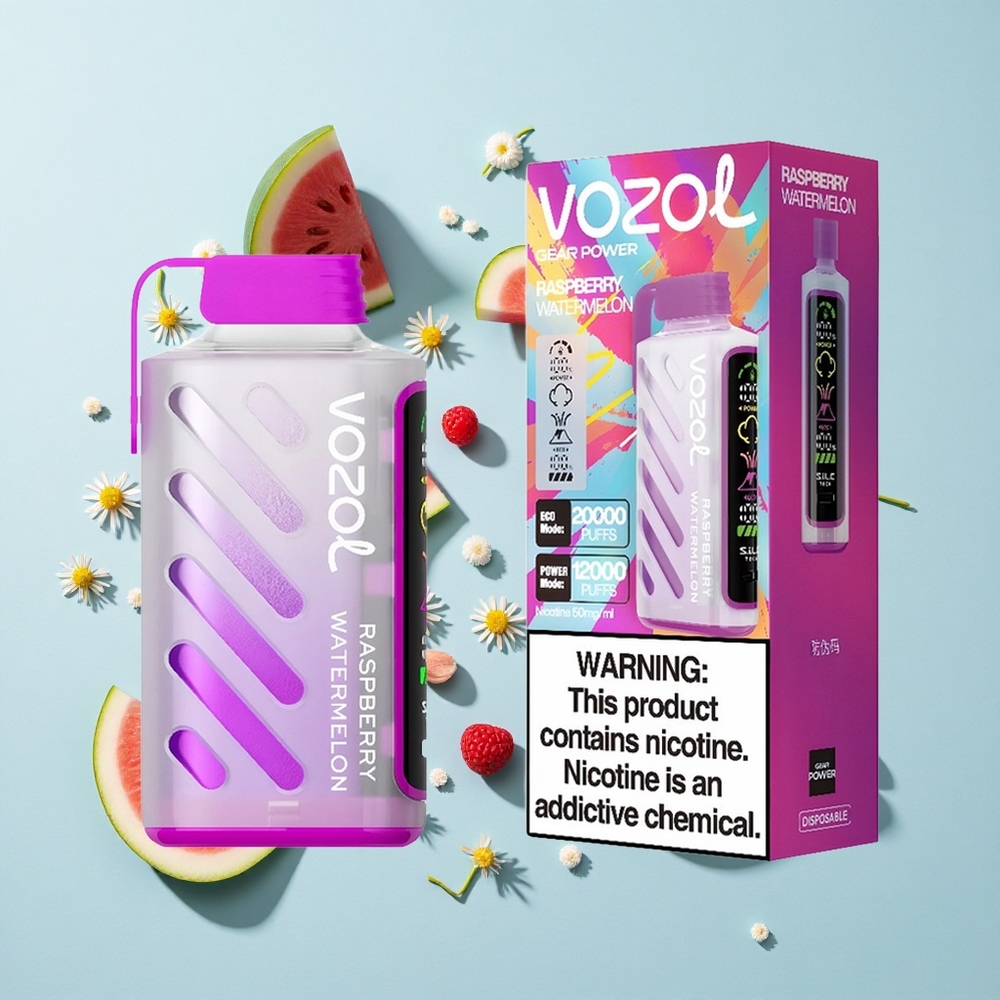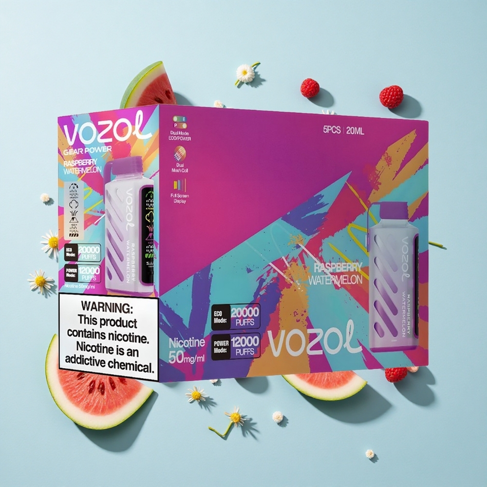 VOZOL Gear Power 20000 Puffs Vape Descartável Framboesa Melancia com Tela Cheia e Dual Mesh Coil – 20mL 5%(50mg)