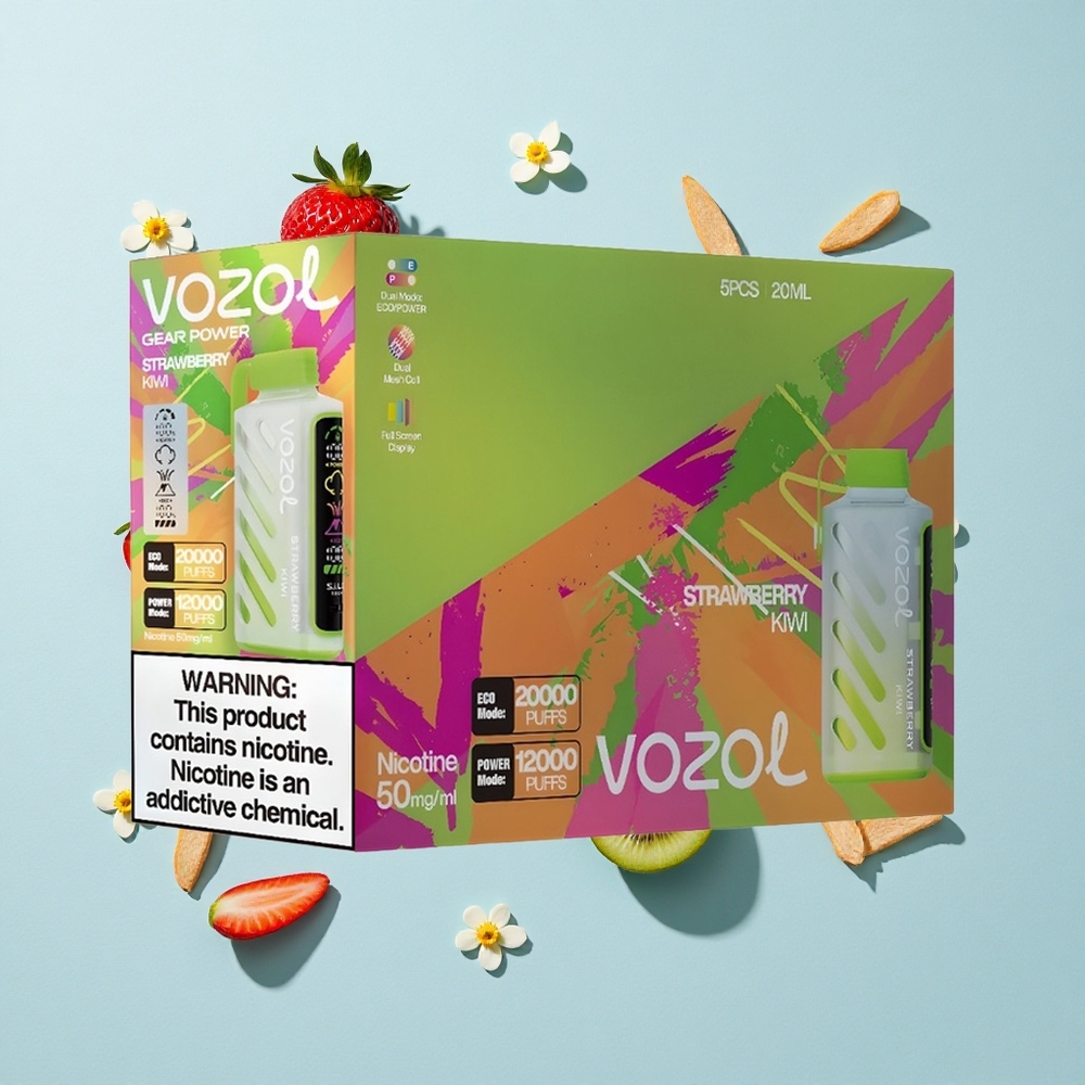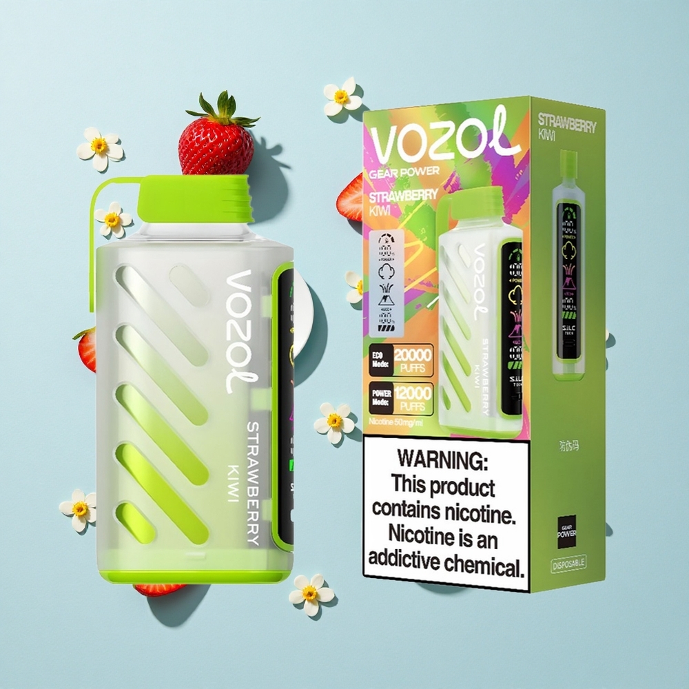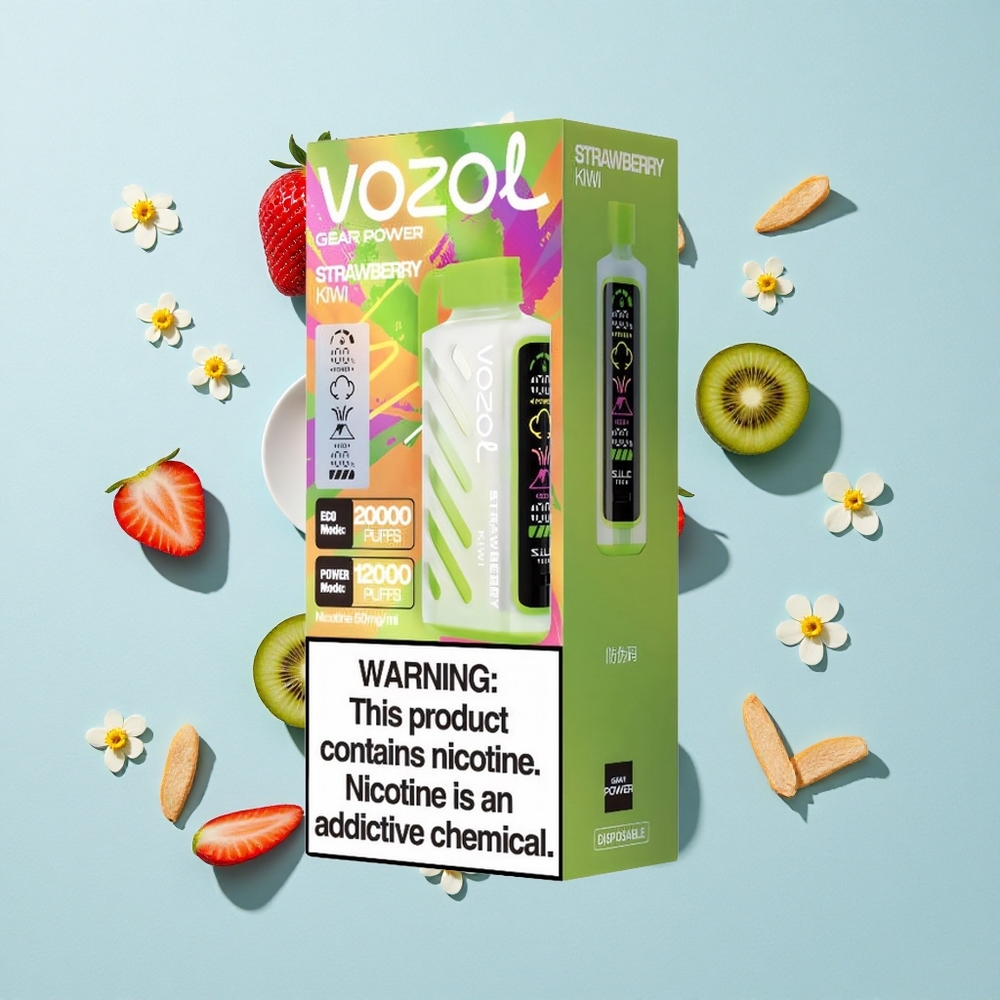 VOZOL Gear Power 20000 Puffs Vape Descartável Morango Kiwi com S.i.L.C. Tech, Dual Mesh Coil e 20mL