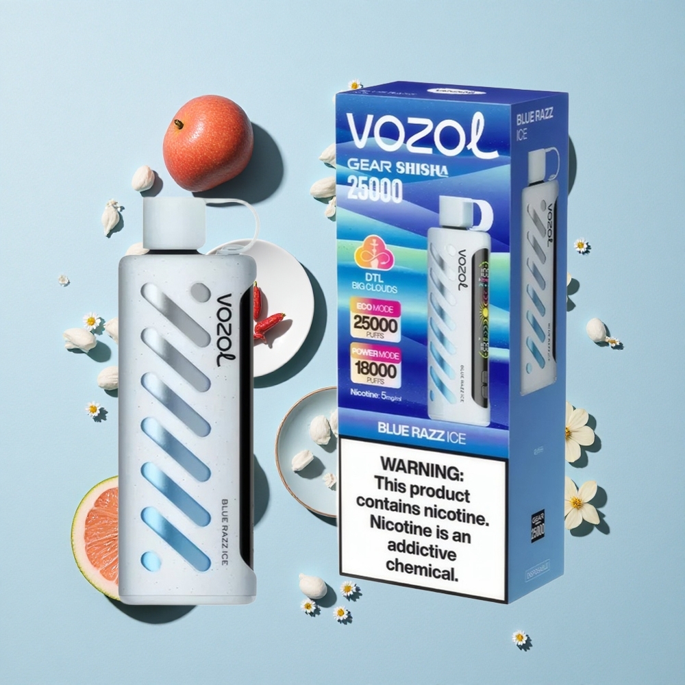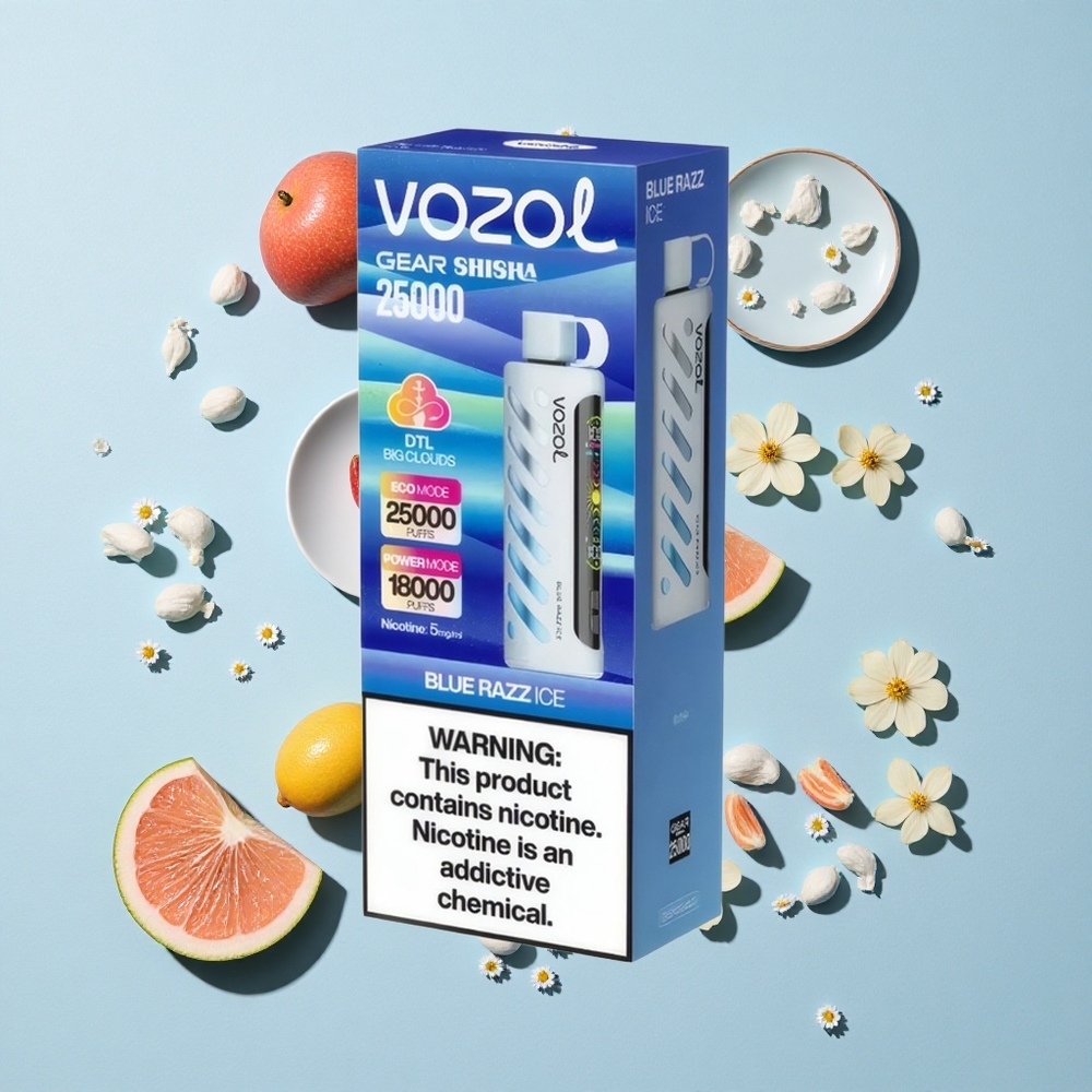 VOZOL Gear Shisha 25000 Puffs Vape Disposable Mirtilo Gelo com 30 Sabores, S.i.L.C Tech, Dual Mesh, 1000mAh, 5mg/ml