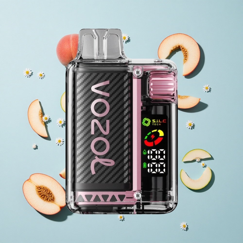 VOZOL Vista 20000 Puffs Vape Pêssego Gelo com Bateria Recarregável 650mAh, Tela OLED e Bobina Dual Mesh S.i.L.C Tech